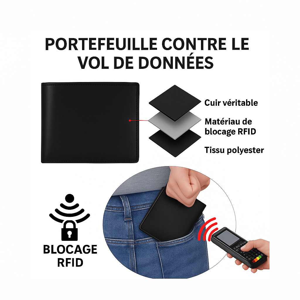 Bloque les scans RFID pour votre sécurité.