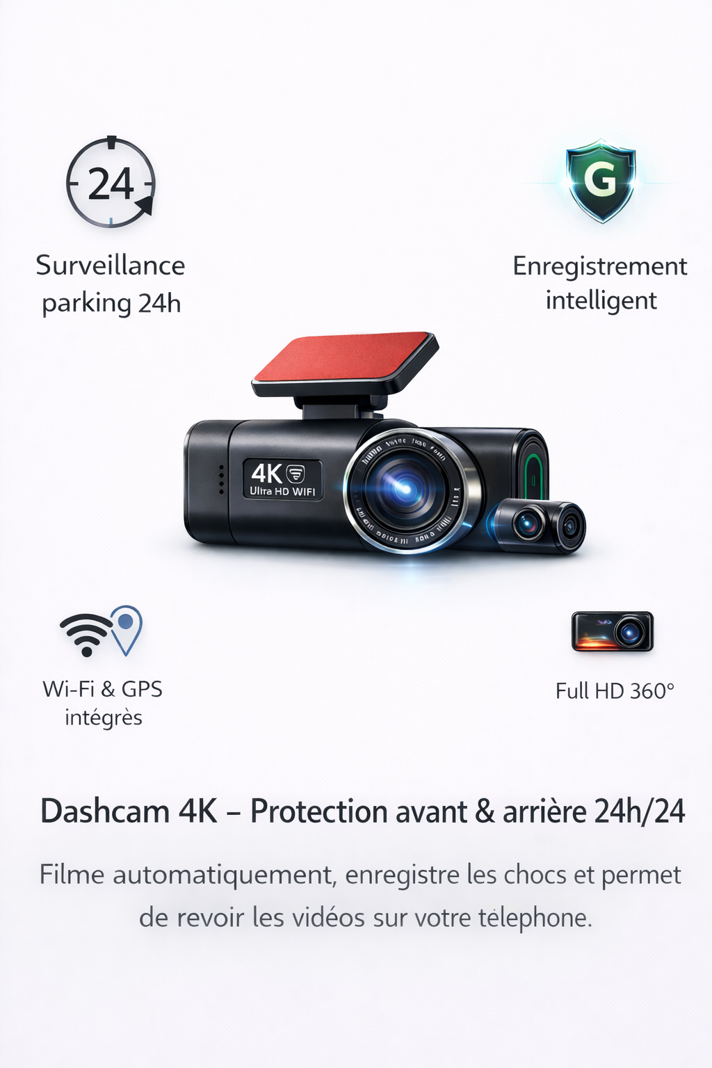 ✔️ Caméra arrière Full HD pour une protection à 360°